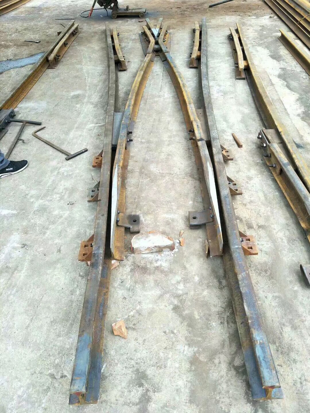 在上世紀六十年代林州人民(原林縣),自力更生,艱苦奮斗,在非常艱難困苦的歲月里,修造了舉世聞名的“人造天河”紅旗渠,被譽為世界八大奇跡之一,在新世紀的今天,林州兒女踏著前輩的足跡,發揚紅旗精神,繼續前進,為振興經濟中原崛起,在原來的基礎上不斷創新發展,使企業躍上了新的臺階。 我公司為上新產品整鑄道岔,斥巨資擴建廠房,引進設備,聘請人才,特聘(原煤炭部北京設計研究院)道岔專家胡工為我公司技術總監,特聘鐵道部寶雞橋梁廠鑄造專家王工為質檢總監,經過多方努力,無數次的試驗,整鑄道岔于2003年終于試制成功,并已批量生產投放市場,受到了各用戶的一致好評和青睞。 拼裝道岔是用螺拴和鉚釘連接在一塊的,使用后經礦車往來的軋壓和雨水的腐蝕,很容易出現螺帽脫落,鉚釘松動,造成機芯解體或損壞,而影響了正常的生產運輸和造成重大安全隱患,而整鑄道岔機芯是高溫一次澆鑄成型,經粹火,正火等多道工藝處理,其金相組織結構嚴密,抗拉抗沖擊性能極高。它是由多種元素組成的低合金剛,耐磨系數是普通拼裝機芯的4倍,從而大大降低了使用單位的生產成本,減少了更換、保修、保養等麻煩,整鑄道岔的優點再者就是承受能力大,運行速度快,使礦進的運輸量大幅度的提升、整鑄道岔的安全性能很好,因為它是一次性澆鑄成型的,在設計和生產過程咽喉部位已加高和加厚(俗稱道岔的有害空間),排除了車輪通過此段掉道的弊端,因此使礦車的速度大幅度提高,為使用單位多創了良好的經濟利益。